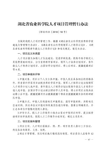 遴选与管理暂行办法》、《湖北省农业科学院领军人才培养计划》、《湖