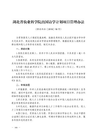 湖北省农业科学院出国访学计划项目管理办法