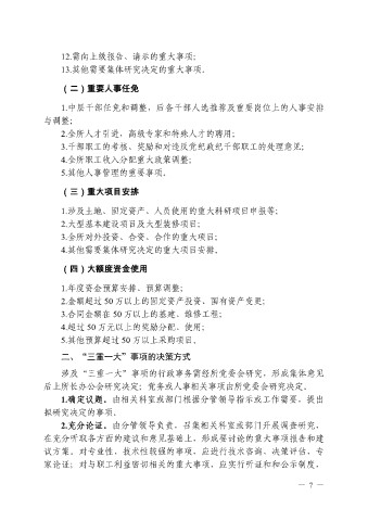 后上所长办公会研究决定;党务或人事相关事项由所党委会研究决定。