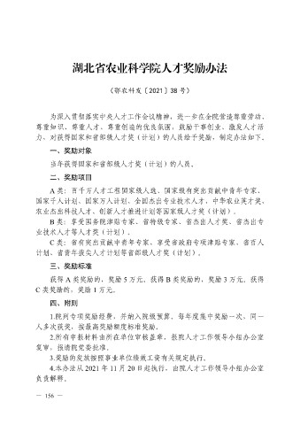湖北省农业科学院人才奖励办法