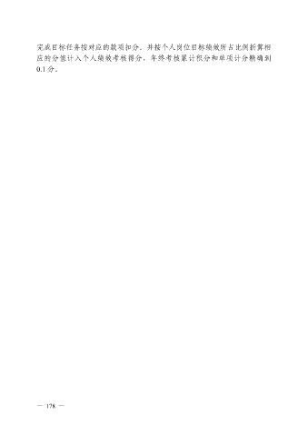 完成目标任务按对应的款项扣分。并按个人岗位目标绩效所占比例折算相 应的分值计入个人绩效考核得分,年终考核累计积分和单项计分精确到 0.1 分。 — 178 —