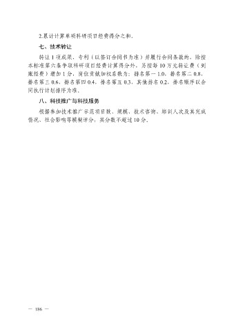 本标准第六条争取科研项目经费计算得分外,另按每 10 万元转让费(到