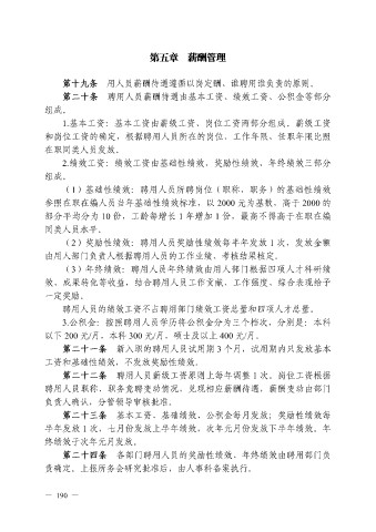 第二十条 聘用人员薪酬待遇由基本工资、绩效工资、公积金等部分