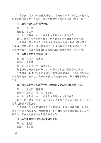 工作职责:负责全所精神文明建设工作的组织领导,制定全所精神文