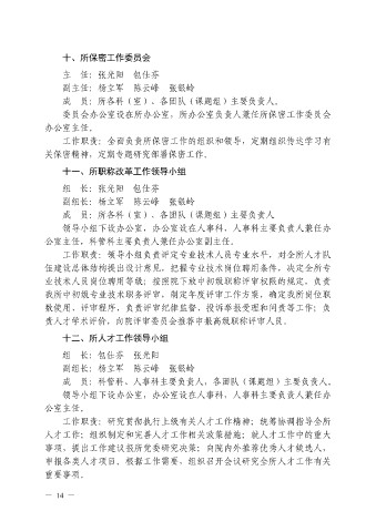 工作职责:领导小组负责评定专业技术人员专业水平,对全所人才队