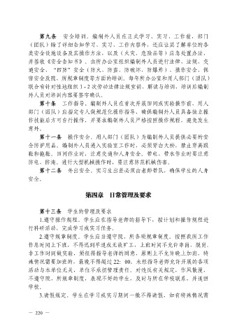 第十二条 外出安全。实习生出差必须由老师带队,确保学生的人身