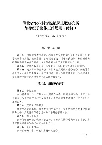 第一条 根据院党委的决定,植保土肥研究所实行所长负责制;所党
