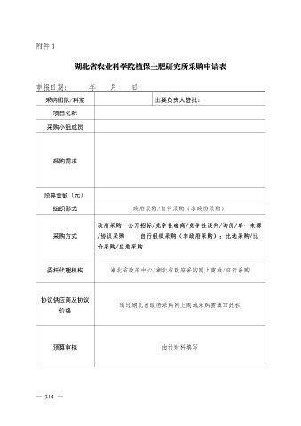 湖北省农业科学院植保土肥研究所采购申请表