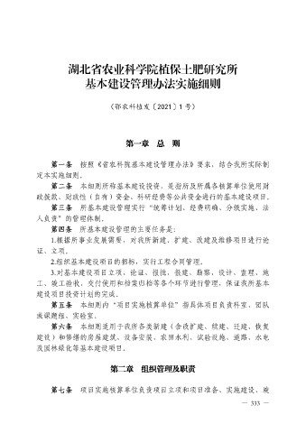 第一条 按照《省农科院基本建设管理办法》要求,结合我所实际制