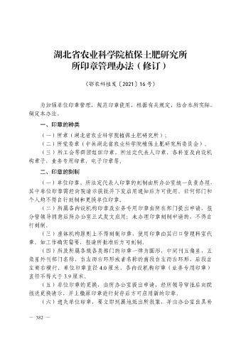 (二)所党委章(中共湖北省农业科学院植保土肥研究所委员会)。