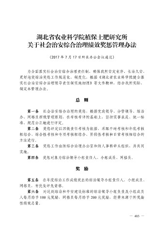 更好地使综治奖惩工作规范化、制度化,根据《湖北省农业科学院健全落