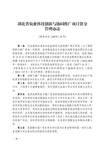 创新与推广资金)的管理,有效推进湖北乡村振兴战略实施和现代农业高