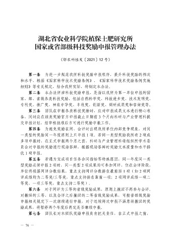 第一条 为进一步规范我所科技奖励申报程序,提升科技奖励的档次