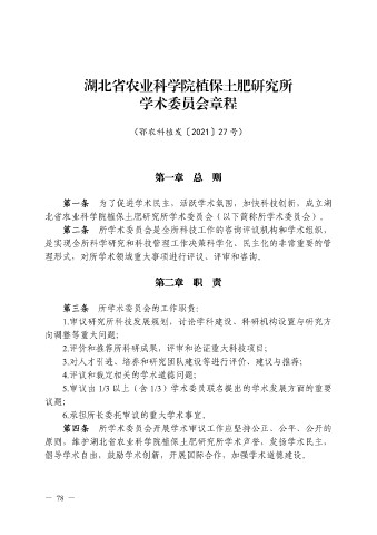 原则,维护湖北省农业科学院植保土肥研究所学术声誉,发扬学术民主,