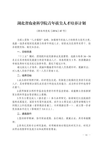 湖北省农业科学院青年拔尖人才培养计划